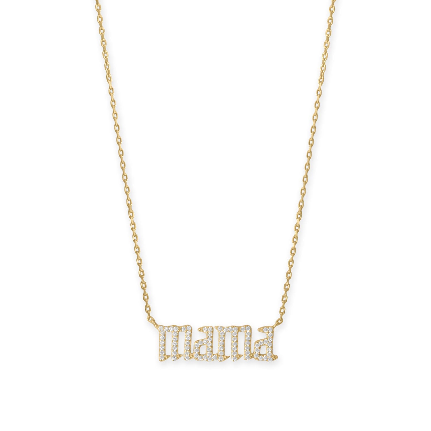 16 + 2 14 Karat Gold Plated CZ mama Necklace