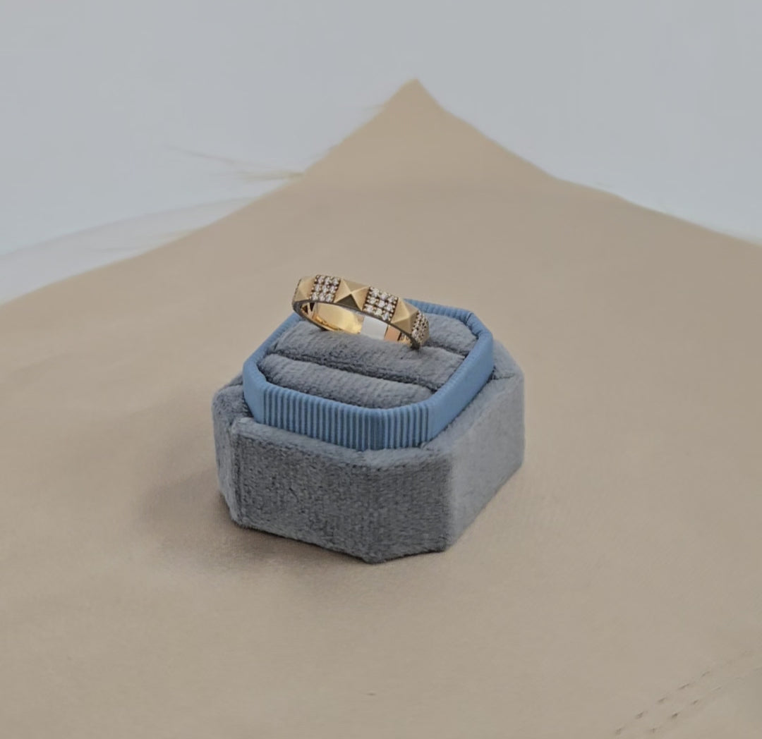 Delaney | 14k Yellow Gold | Natural Diamond | Ring | Elevate your wedding day with this stunning Delaney yellow gold band, crafted in lustrous 14k gold with a sophisticated matte finish. Featuring 36 round diamonds totaling 0.277 carats, this size 7 ring combines timeless elegance with modern refinement. The carefully set natural diamonds catch light beautifully while the matte texture adds contemporary appeal. Perfect as a wedding band or meaningful everyday piece, this ring offers enduring quality and understated luxury that celebrates your commitment in style.