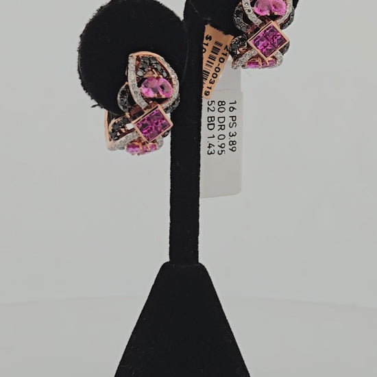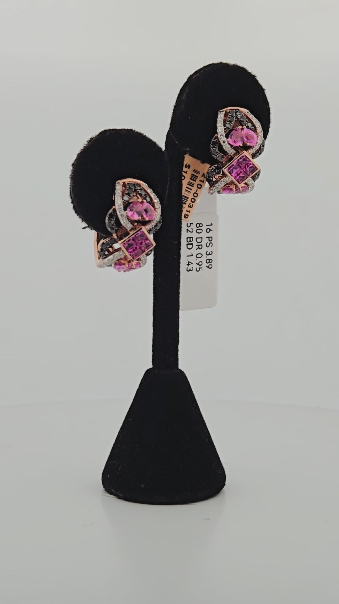 Jania | 14k Rose Gold | Pink Sapphire & Natural White & Black Diamonds | Earrings