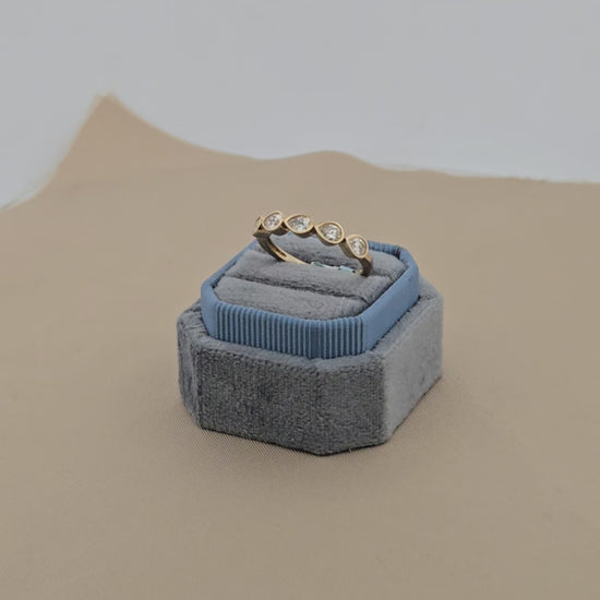 Josephine | 14K Yellow Gold | Lab Diamond | Josephine is a refined 14K yellow gold band featuring .75 CTW of pear-shaped lab-grown diamonds, each securely nestled in a smooth bezel setting. With its modern silhouette and elegant sparkle, this ring is perfect for stacking or wearing solo as a contemporary statement of style and sustainability.
