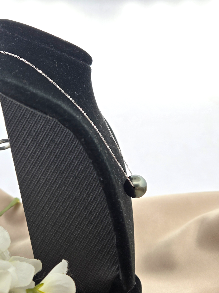 Nyxie | 18K White Gold | South Sea Pearl | Necklace | Introducing Nyxie, an elegant necklace that captures timeless sophistication. This stunning piece features a lustrous 12mm South Sea pearl, renowned for its creamy warmth and natural radiance, suspended from a delicate 18K white gold setting. The precious metal's cool brilliance perfectly complements the pearl's organic beauty, creating a harmonious contrast that draws the eye. Whether worn for special occasions or as an everyday statement, Nyxie effortlessly elevates any ensemble with refined grace and understated luxury. A treasure that transcends trends and becomes a cherished heirloom.