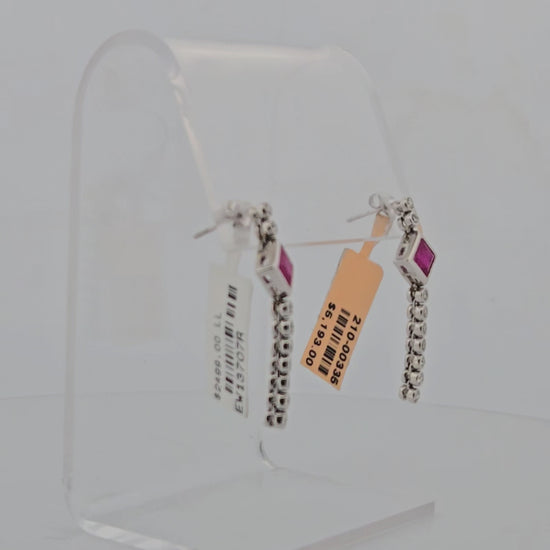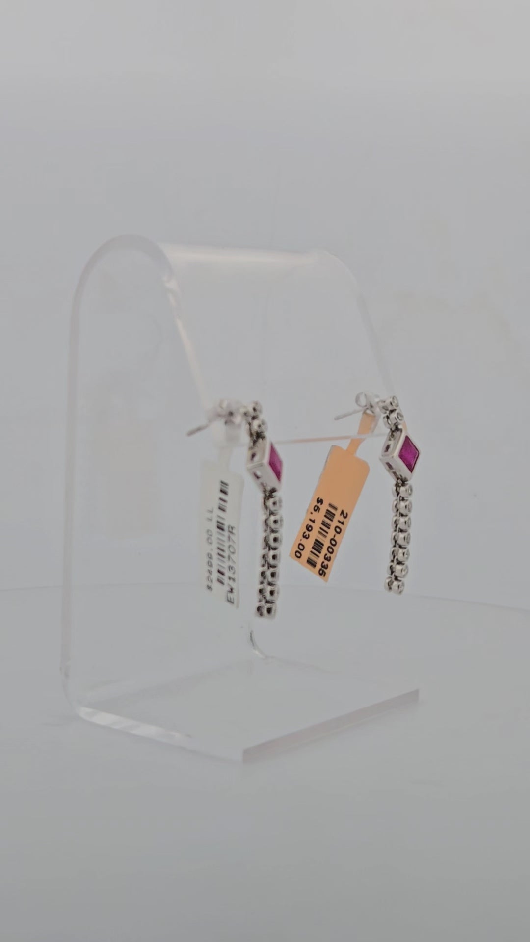 Penny | 14k White Gold | Ruby & Diamond | Earrings | Elevate your jewelry collection with these stunning drop earrings, featuring two radiant square cushion rubies totaling 1.40 carats, complemented by eighteen sparkling round diamonds weighing 0.45 carats. Crafted in lustrous 14 karat white gold, these earrings blend timeless elegance with contemporary design. The rich crimson rubies create a captivating focal point, while the diamond accents add brilliant sparkle and sophistication. Perfect for special occasions or as a treasured everyday piece, these earrings deliver luxury and refined beauty that will turn heads and become a cherished favorite in your collection.