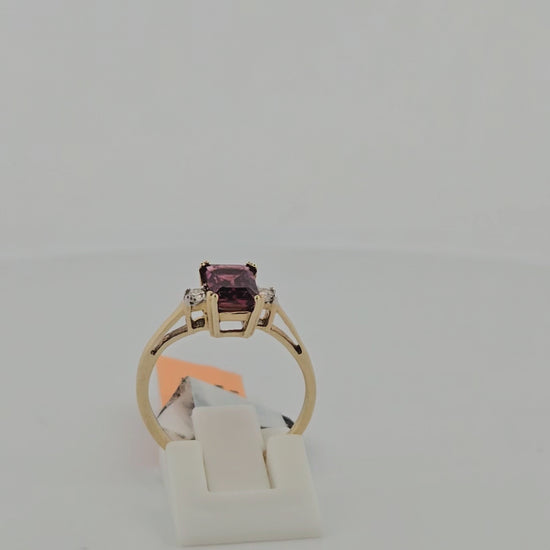 Virginia | 10k Yellow Gold | Pink Tourmaline | Diamond | Ring | The Virginia ring showcases a stunning 1.00 carat pink tourmaline centerpiece set in lustrous 10k yellow gold, complemented by 0.10 carats of sparkling diamonds that frame the stone with timeless elegance. This size 6.5 ring combines the romantic allure of pink tourmaline with the enduring beauty of gold and diamonds, making it an ideal choice for engagements, anniversaries, or as a meaningful personal treasure. The warm glow of 10k yellow gold enhances the tourmaline's rich color while offering durability for everyday wear. A sophisticated piece that captures attention and admiration.