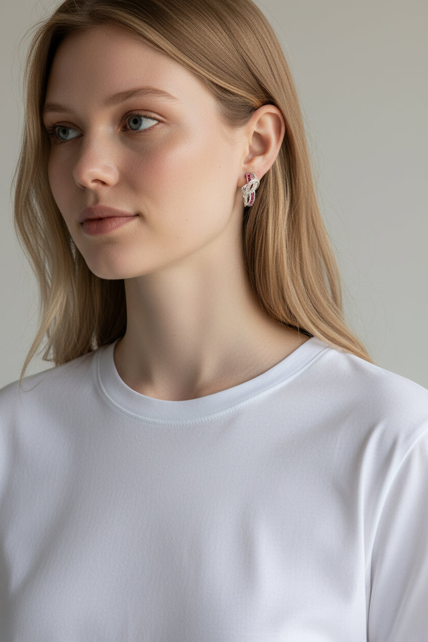 Colette | 14K White Gold | Ruby and Natural Diamond | Earrings